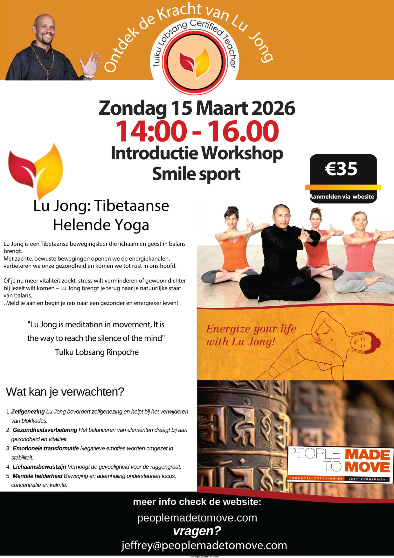Welkom bij People Made to Move. Hier werk je aan jouw fysieke, mentale en emotionele kracht. Via Tibetaanse Yoga, Kickchange Coaching, (Kick)bokstraining en workshops creëer je ruimte in jezelf – met als doel: rust, richting en verbinding.