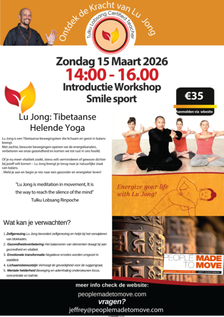 Heb je last van onderrugklachten, spanning in je lichaam of een vol hoofd? Doe mee met de Lu Jong introductie workshop in Haarlem bij Smile Sport. In twee uur maak je kennis met Lu Jong, een Tibetaanse bewegingsmeditatie die bekendstaat om zijn positieve werking op de onderrug, stressreductie, mobiliteit en innerlijke balans.